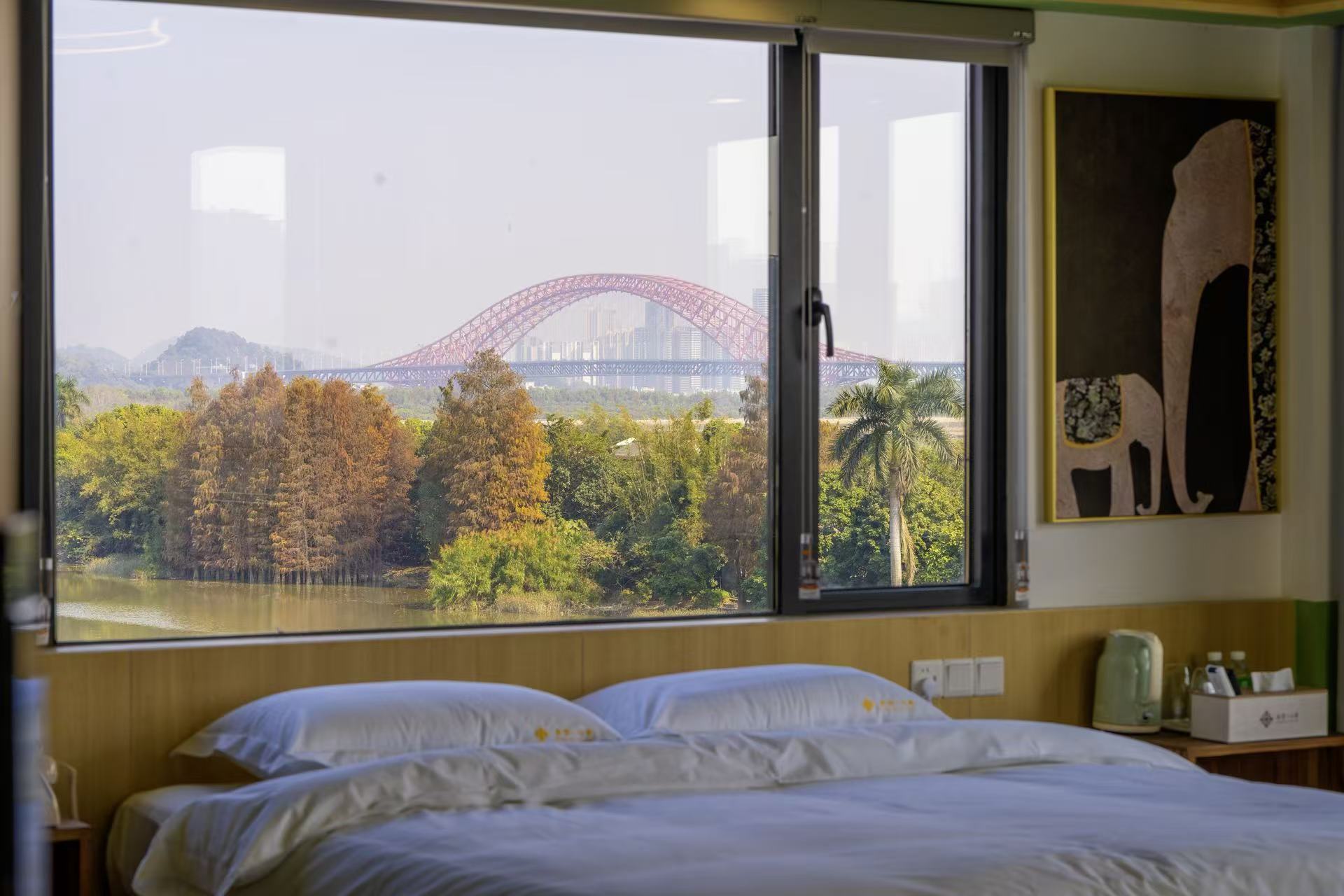 站在桥上看风景,自己也成了风景的一部分。特别是在异木棉盛开的季节,从高空俯瞰,粉色花带与红色桥身形成视觉冲击,随手一拍就是大片质感。